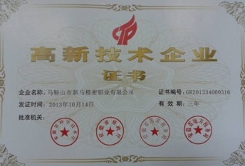 2013年10月,新馬被認(rèn)定為安徽省高新技術(shù)企業(yè)。